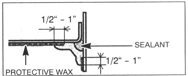 (3) Apply a 3/8" bead of sealant to the gaps, overlapping the original sealant 1/2 inch to 1 inch.