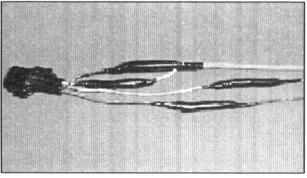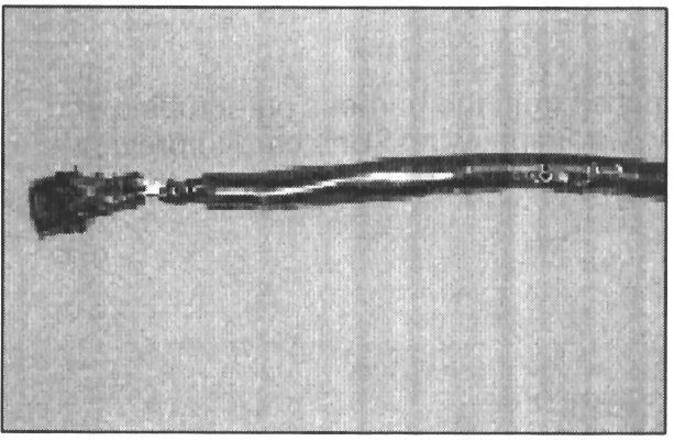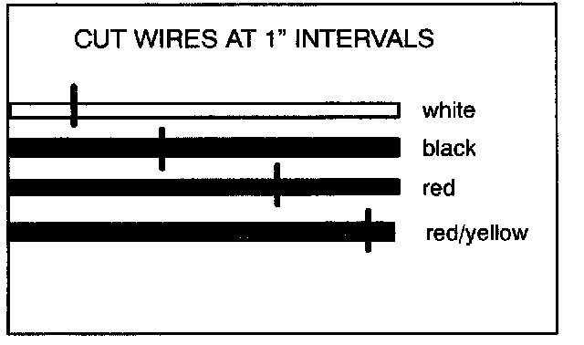 b. Cut five inches from the harness outer tubing and peel it away from the wires. Use care to prevent damaging the wires.