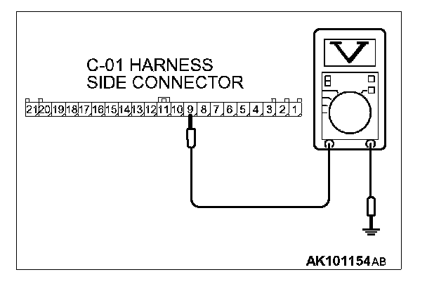 3. Measure the voltage between terminal No. 9 and ground.