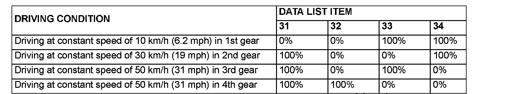 ^ When driving at constant speed of 50 km/h (31 mph), the display should be 1,600 - 1,900 r/min <2.4L Engine>, 1,300 - 1,600 r/min <3.0L Engine>. (Gear range: 3rd gear)