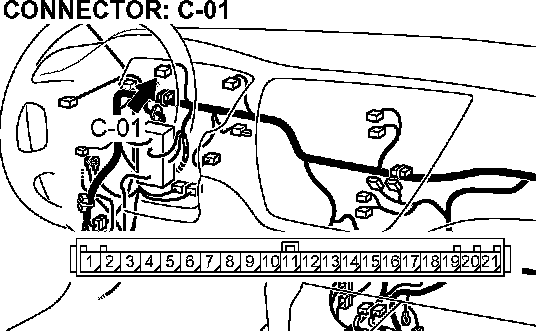 STEP 6. Check the harness for open circuit, short circuit to ground or damage between combination meter connector C-01 terminal 12 and PCM connector C-116 terminal 80.