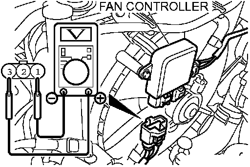 8. If the voltage does not repeatedly change as indicated, replace the fan controller.