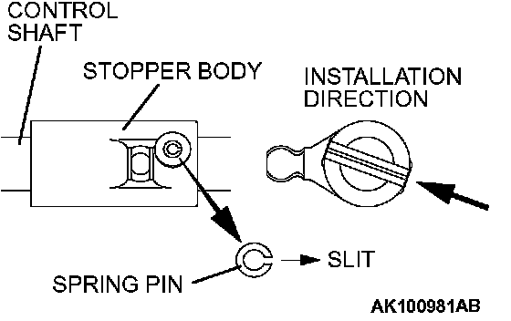 Drive in the spring pin so that the slit is in the direction shown in the figure.