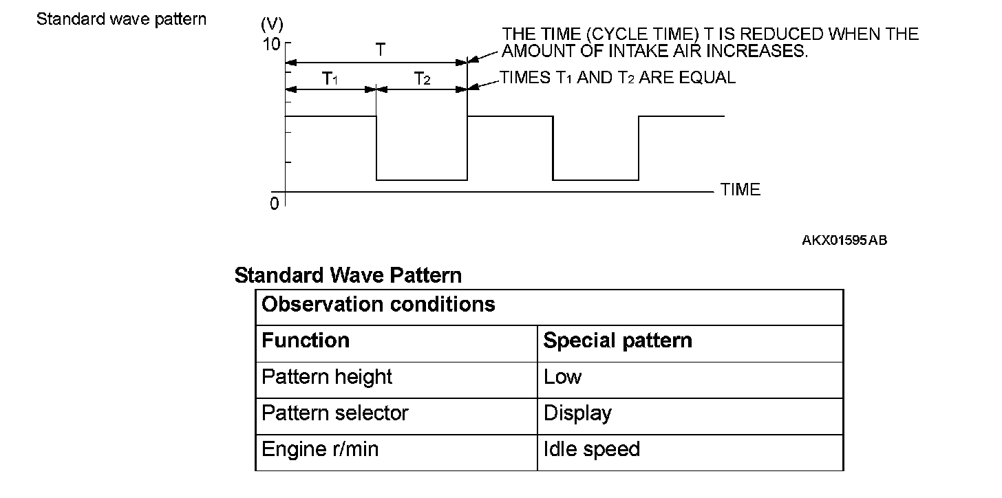 1. Check that cycle time T becomes shorter and the frequency increases when the engine speed is increased.