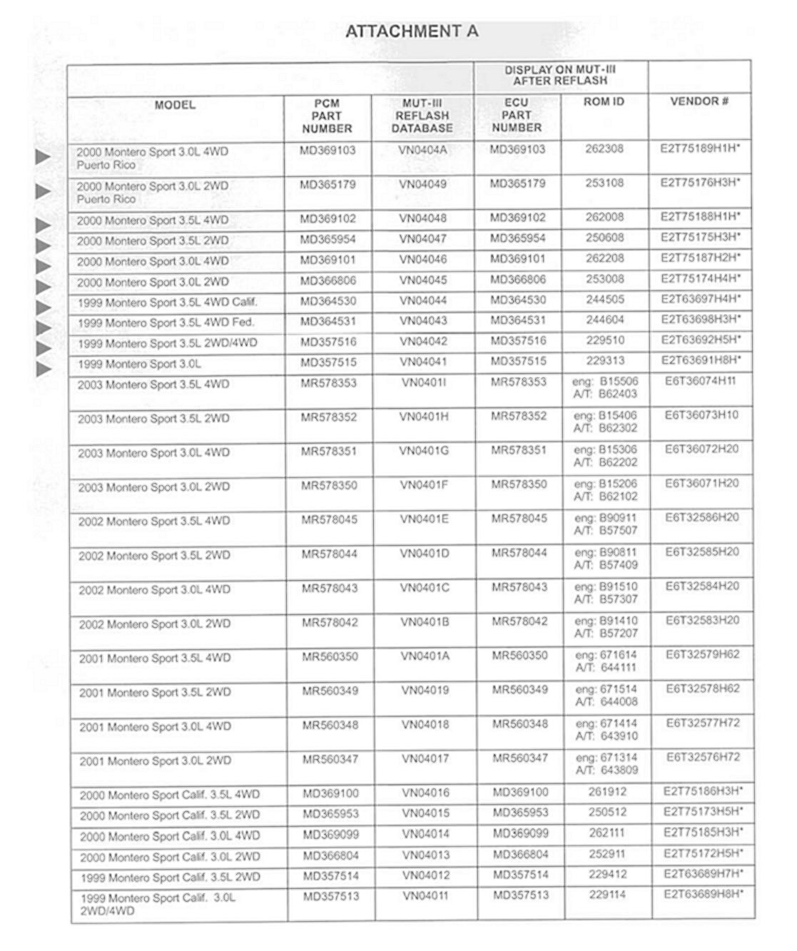 1999-2003 Montero Sport models equipped with 3.0L and 3.5L engine