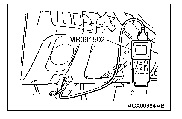 CAUTION:To prevent damage to scan tool MB991502, always turn the ignition switch to the "LOCK" (OFF) position before connecting or disconnecting scan tool MB991502.