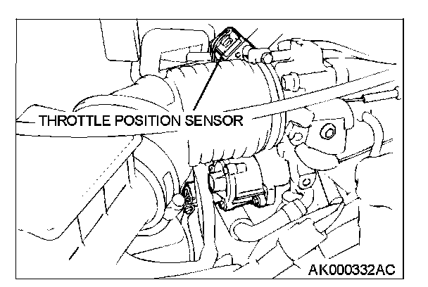 NOTE: If a diagnostic trouble code is sent while adjusting the throttle position sensor, use scan tool MB991502 to erase the diagnostic trouble code.