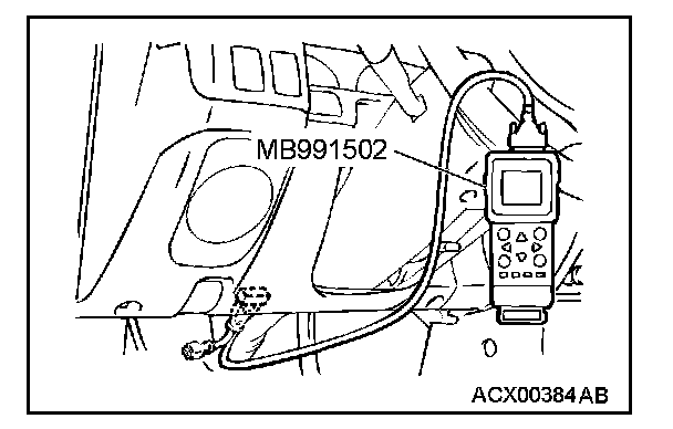 CAUTION: To prevent damage to scan tool MB991502, always turn the ignition switch to the "LOCK" (OFF) position before connecting or disconnecting scan tool MB991502.