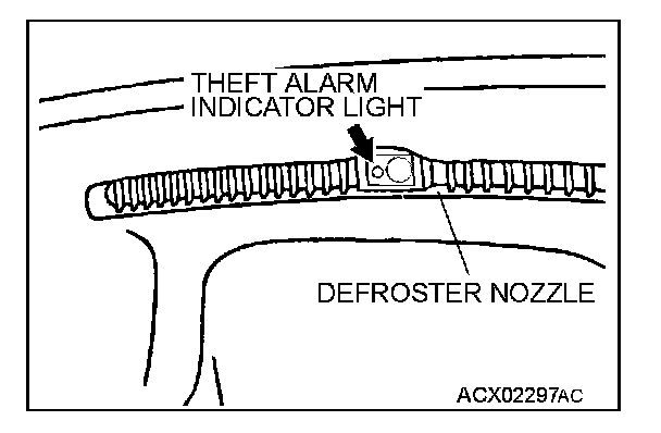 If an attempt is made to start the engine with an unregistered ignition key, cranking occurs, but fuel supply is cut off to disable the engine. In approx. 10 seconds, the theft-alarm indicator will blink for approx. 30 seconds.