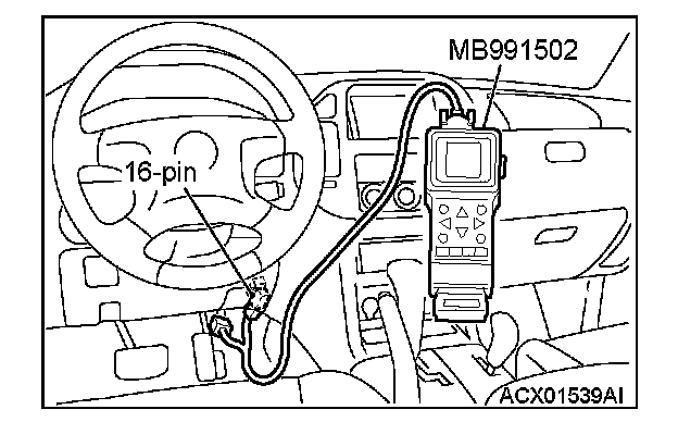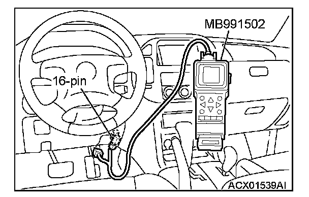 1. Connect scan tool MB991502 to data link connector (16-pin).