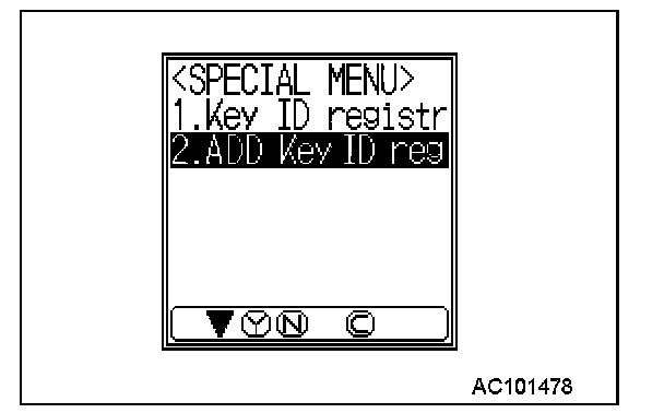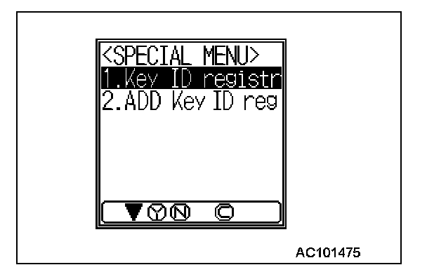 NOTE: Using the key ID register function will cause all key IDs that have been previously registered in the immobilizer-ECU to be erased. All keys need to be registered. Those which have been registered before should be on hand before using this function.