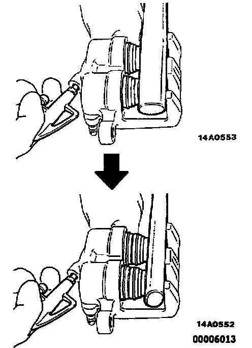 ^ If there is significant difference in the thickness of the pads on the left and right sides, check the sliding condition of the piston, lock pin and guide pin.