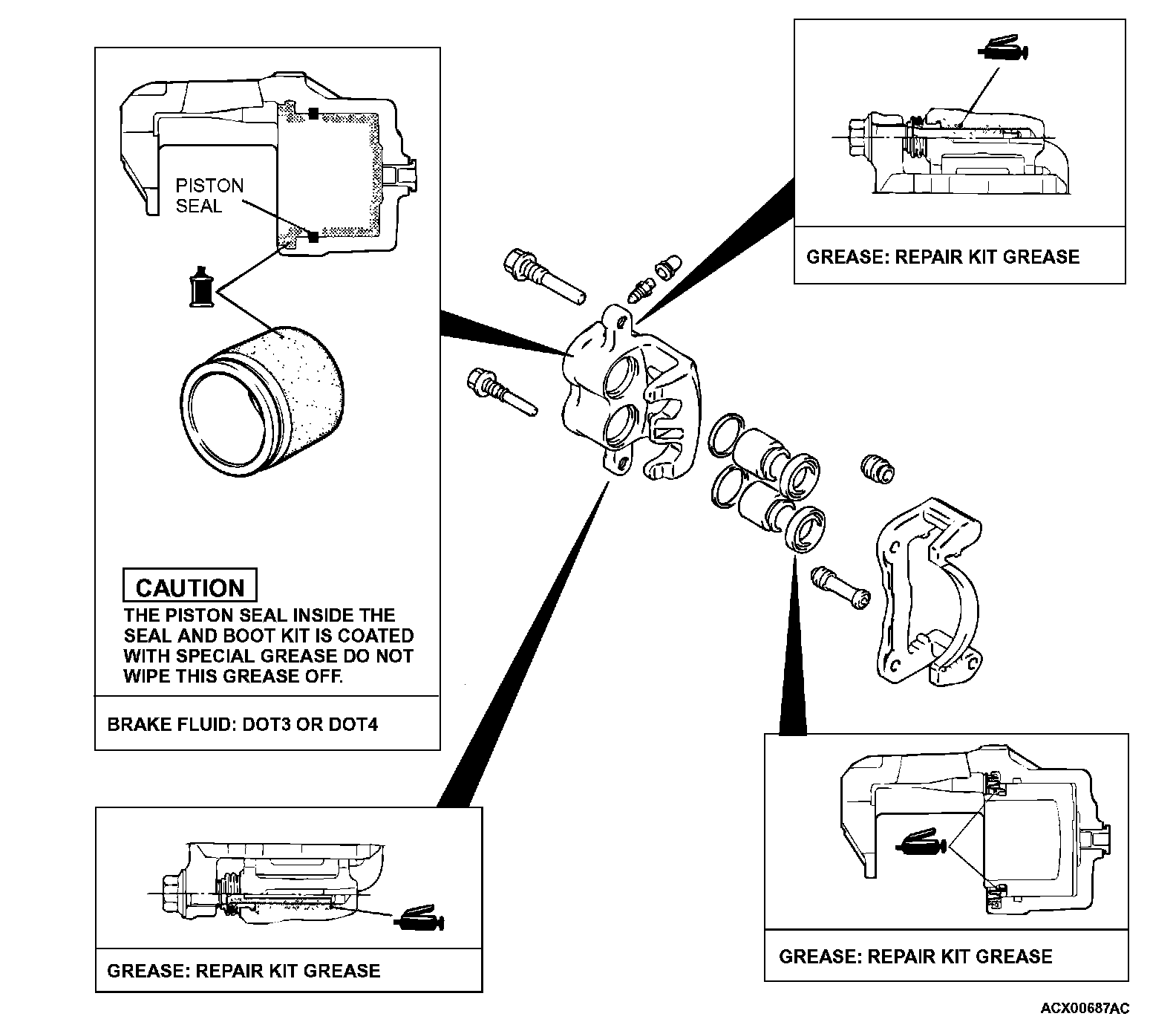 2. Clean the piston surface and inner cylinder with alcohol brake fluid DOT 3 or DOT 4.