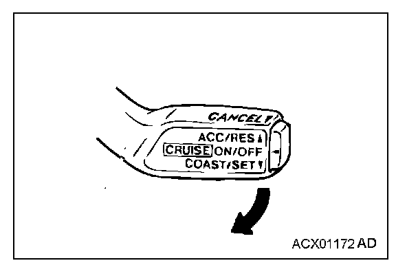NOTE: When the vehicle speed reaches the low limit [approximately 40 km/h (25 mph)] during deceleration, the auto-cruise control will be cancelled.