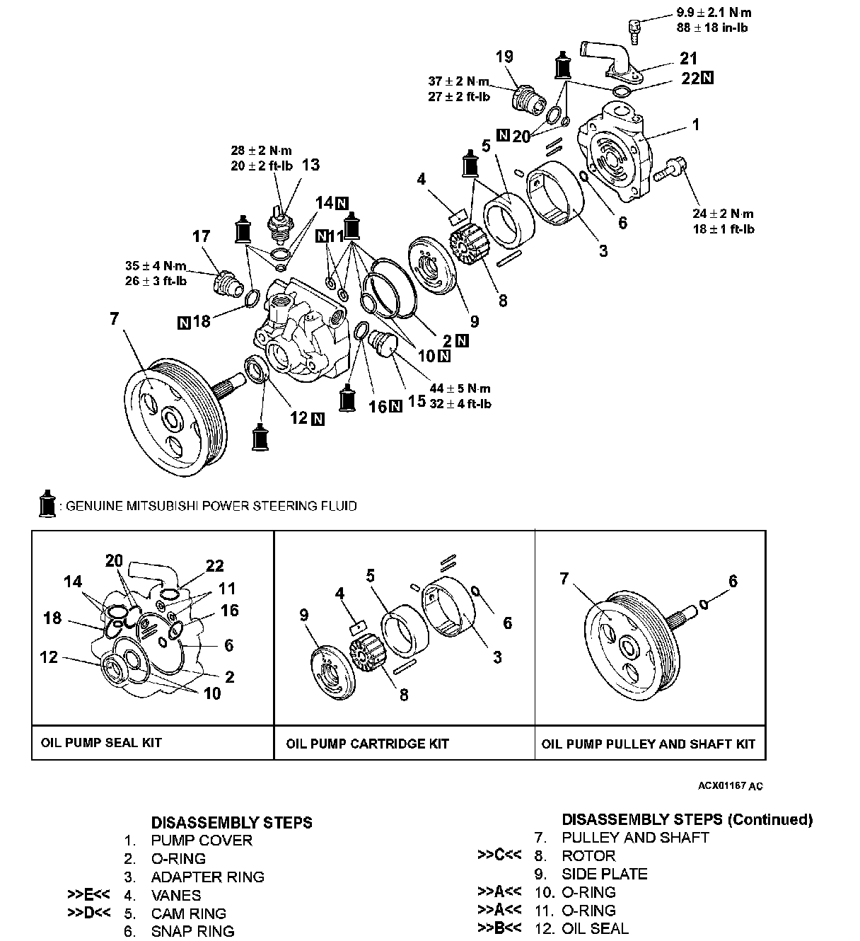POWER STEERING OIL PUMP ASSEMBLY OVERHAUL W/ RELATED COMPONENTS