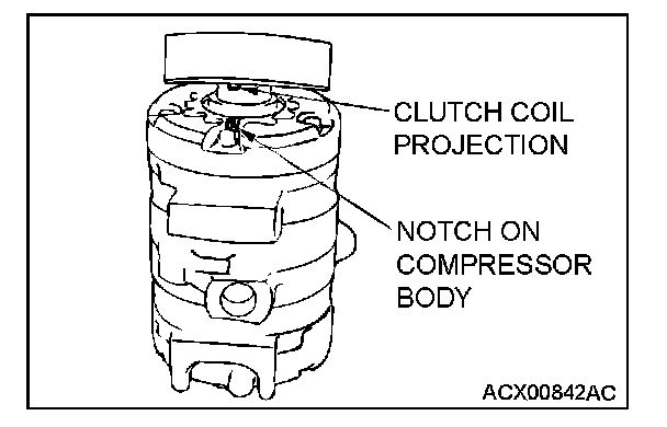 Install the clutch coil to the compressor, mating the compressor body slot to the clutch coil projection.