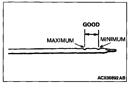 6. Stop the engine and check to ensure that the engine oil level is within the level range indicated on the dip stick.