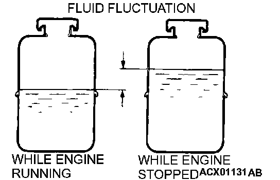 4. Check the difference of the fluid level when the engine is stopped, and while it is running. If the change of the fluid level is 5 mm (0.2 inch) or more, air bleeding should be done.
