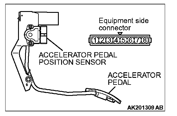 ACCELERATOR PEDAL POSITION SENSOR CHECK1. Disconnect the accelerator pedal position sensor connector.