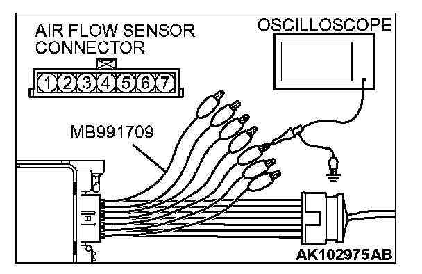 1. Disconnect the volume airflow sensor connector, and connect the test harness special tool (MB991709) in between. (All terminals should be connected.)