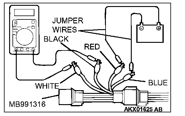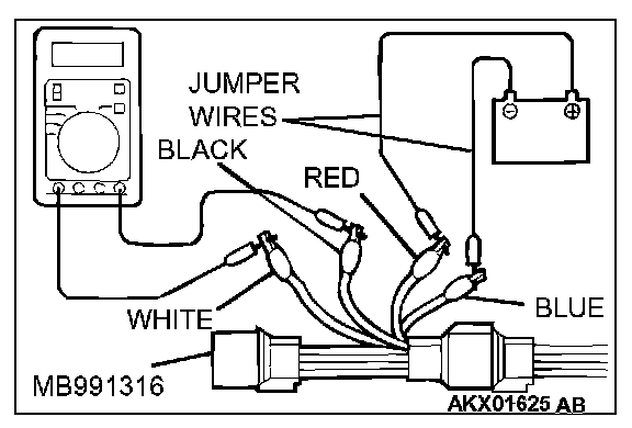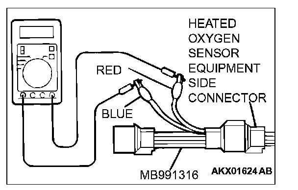 1. Disconnect the heated oxygen sensor connector and connect special tool MB991316 to the connector on the heated oxygen sensor side.