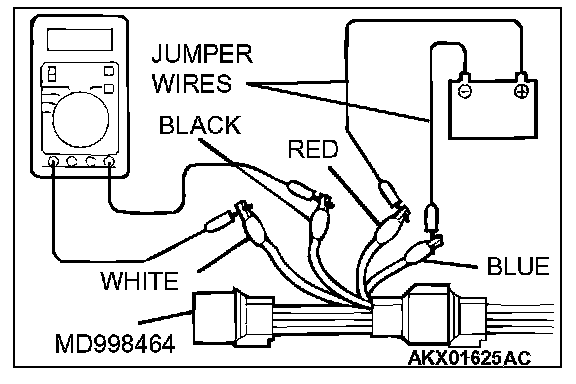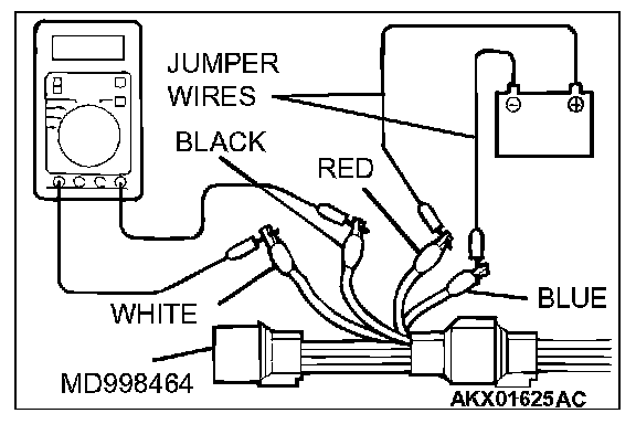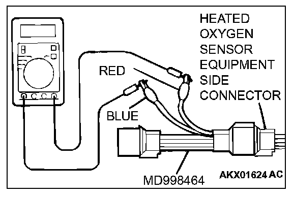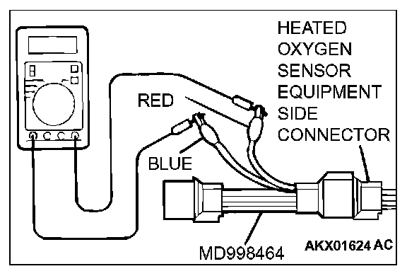 1. Disconnect the heated oxygen sensor connector and connect special tool MD998464 to the connector on the heated oxygen sensor side.