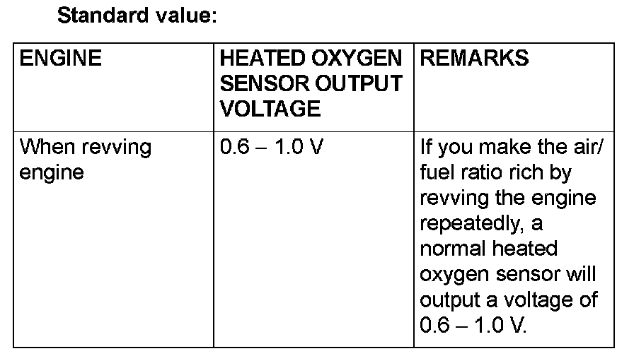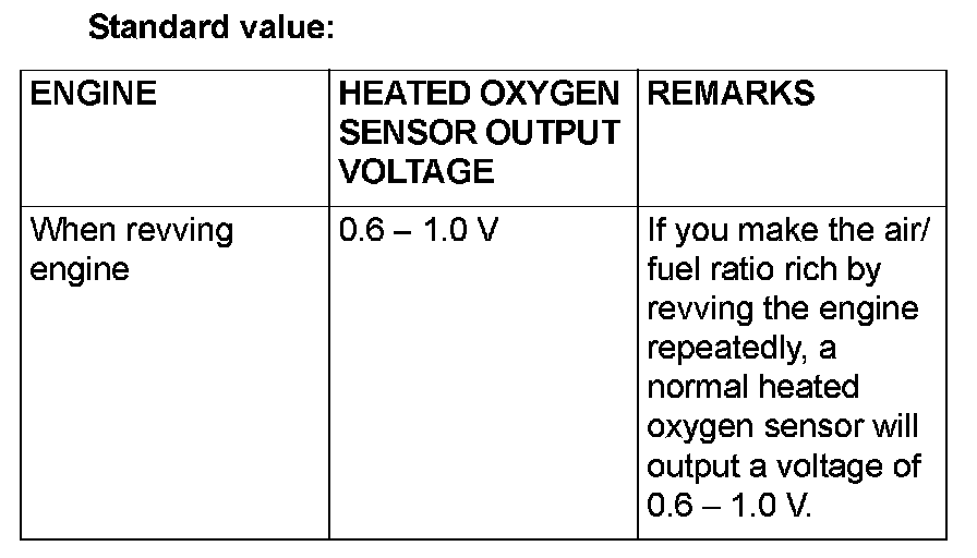 2. While repeatedly revving the engine, measure the heated oxygen sensor output voltage.