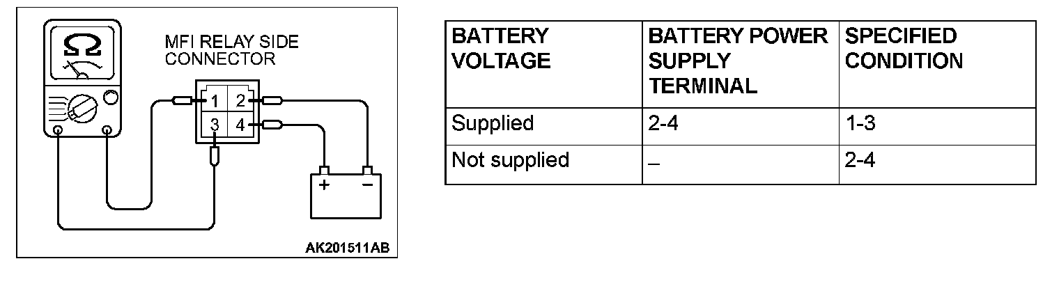 MFI Relay, Throttle Actuator Control Motor Relay And Fuel Pump Relay Continuity Check: