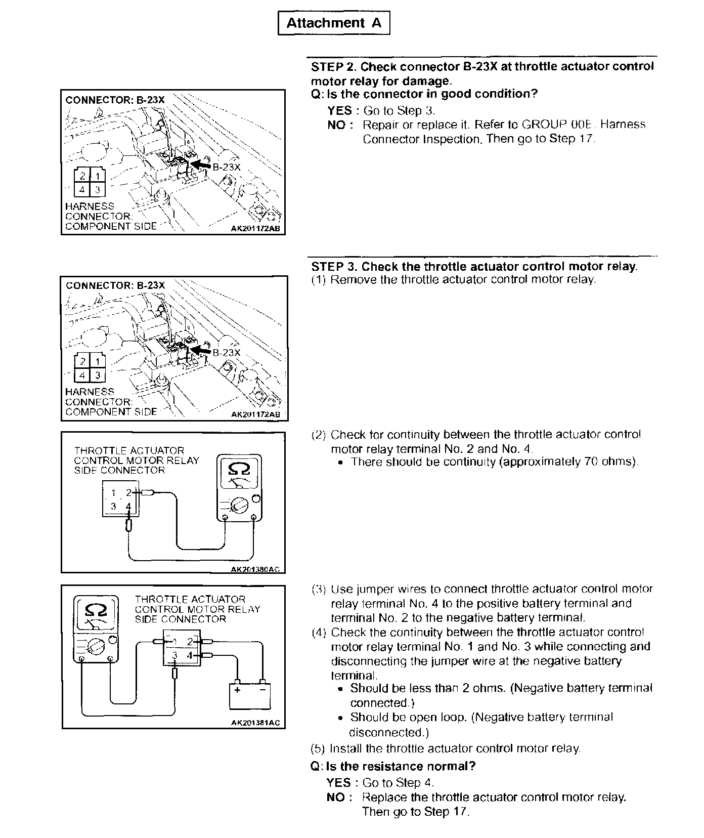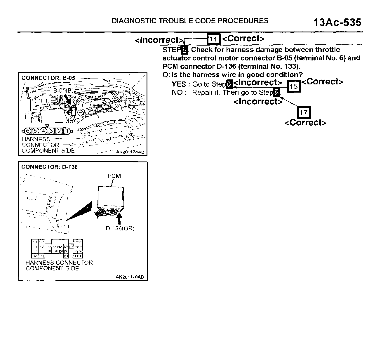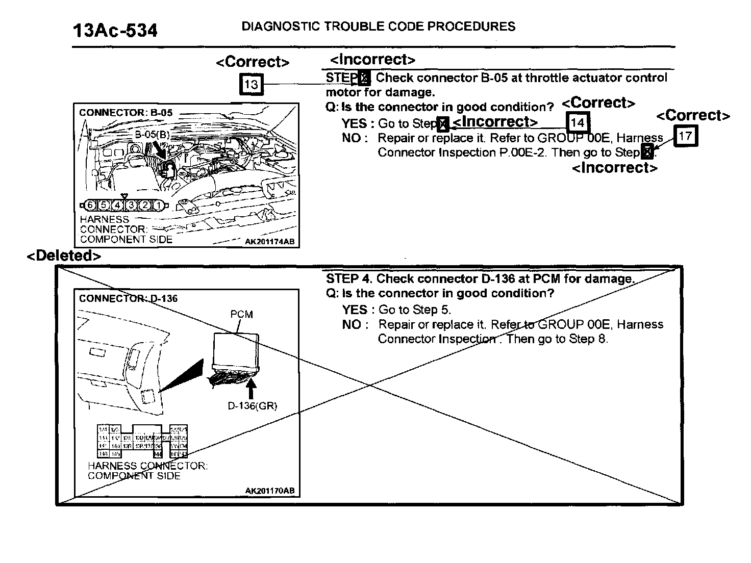 Diagnostic troubleshooting instructions in the 2003 Montero service manual for MFI Diagnostic Trouble Code P0638 "Throttle Actuator Control Motor Circuit Range/Performance Problem" are incorrect. This bulletin contains corrected troubleshooting instructions for DTC P0638.