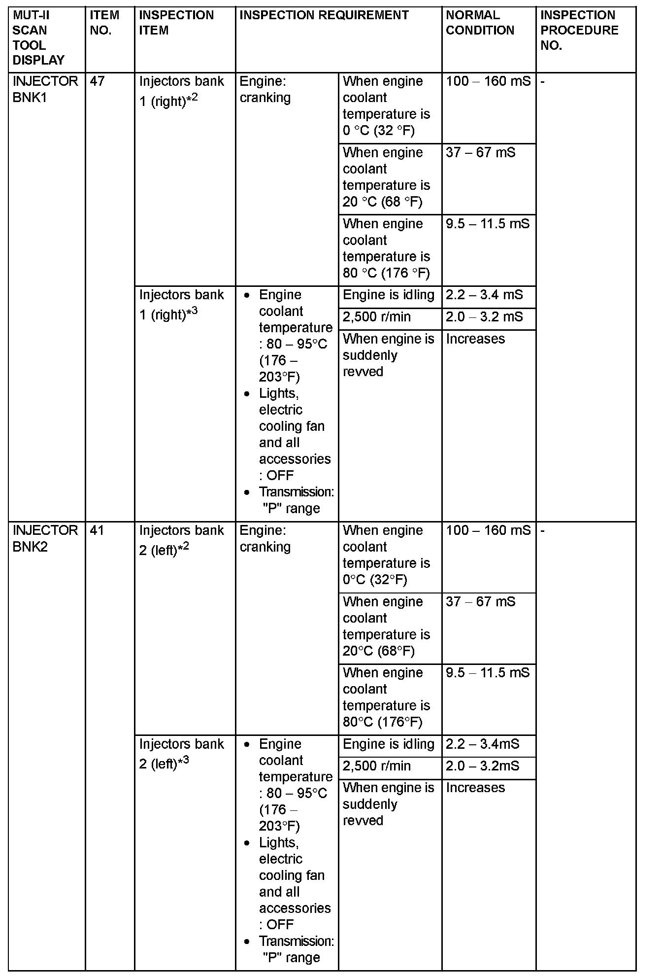 NOTE: *3: In a new vehicle [driven approximately 500 km (311 mile) or less], the injector drive time is sometimes 10% longer than the standard time.