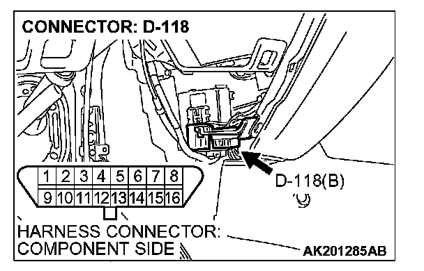 STEP 1.Measure the power supply voltage at data link connector D-118.
