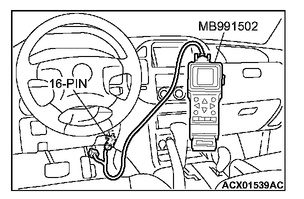 CAUTION: To prevent damage to scan tool MB991502, always turn the ignition switch to the "LOCK" (OFF) position before connecting or disconnecting scan tool MB991502.