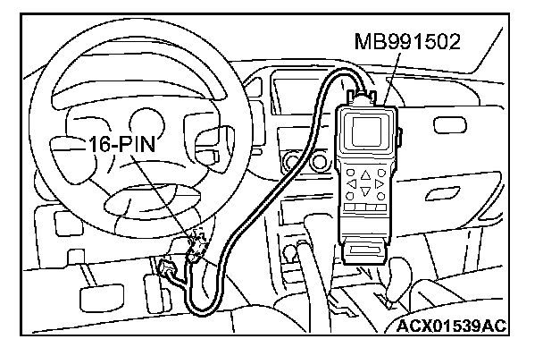 1. Connect scan tool MB991502 to the data link connector.