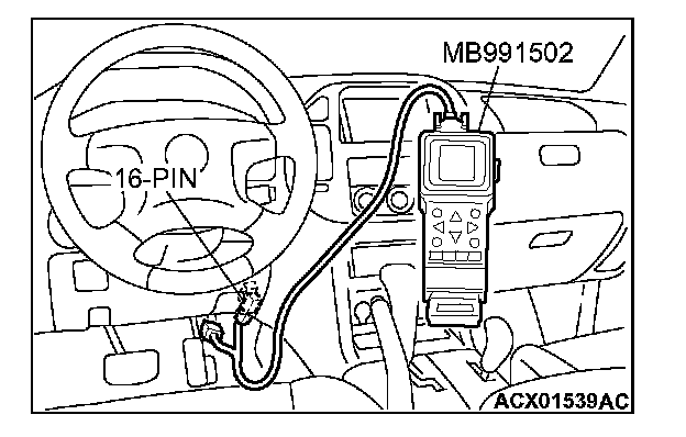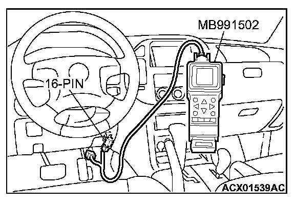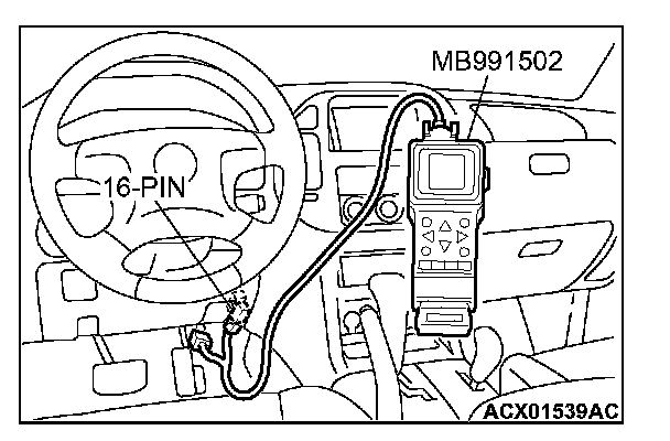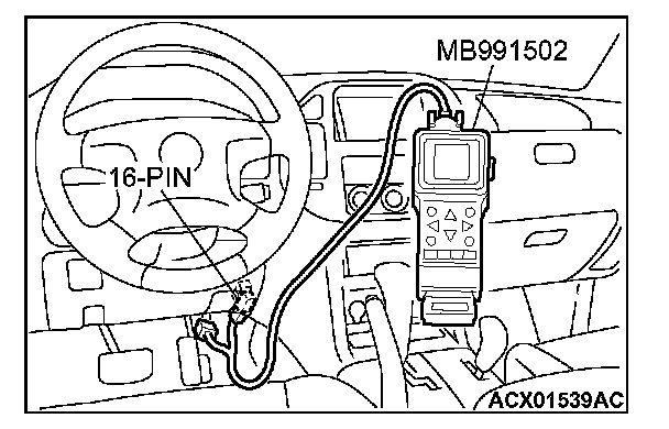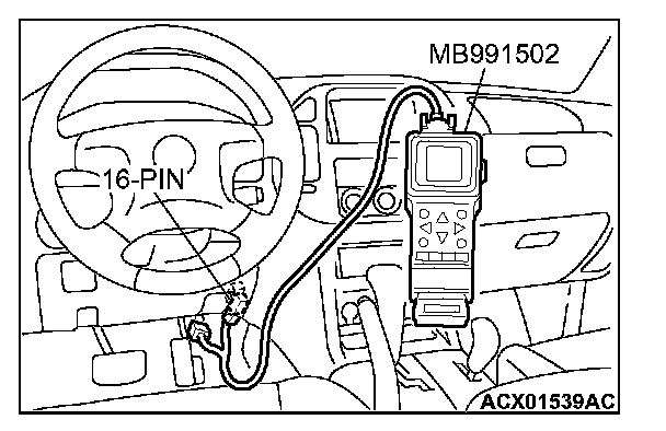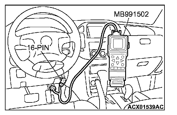 1. Connect scan tool MB991502 to the data link connector.