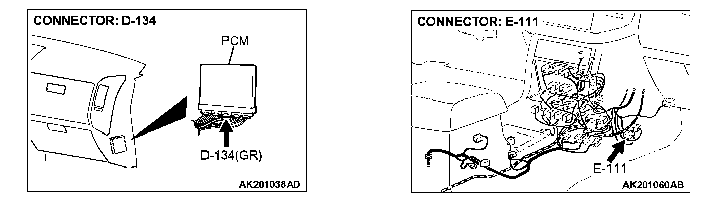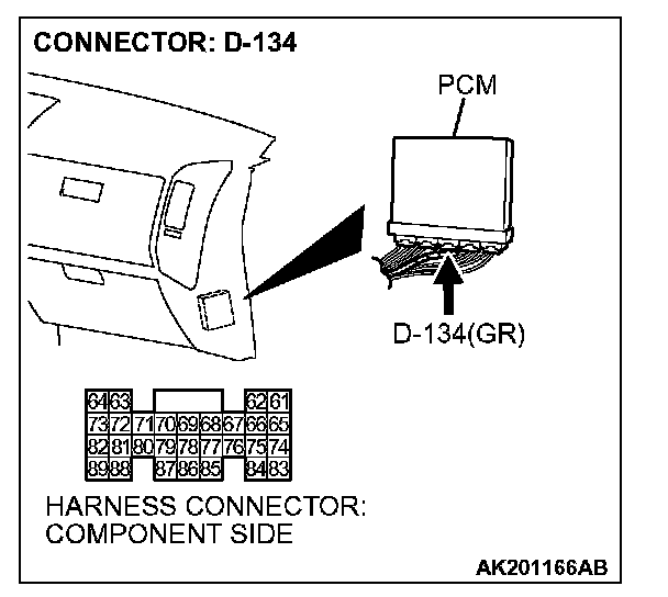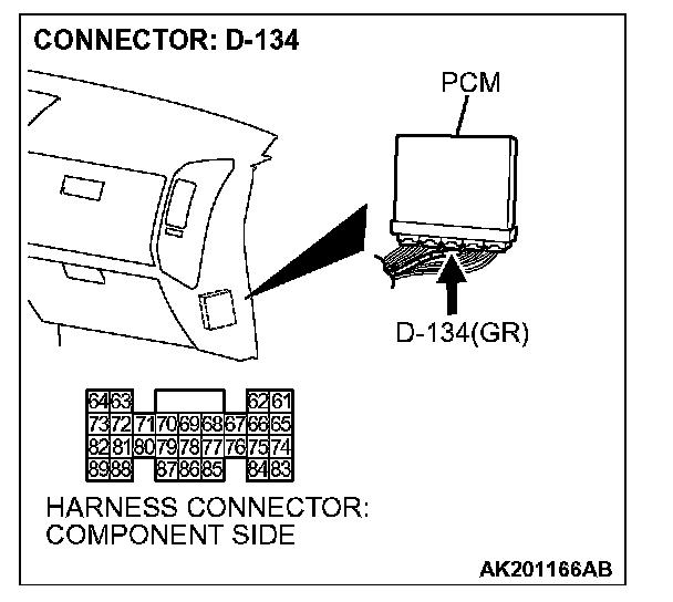 STEP 1. Check harness connector D-134 at PCM for damage.