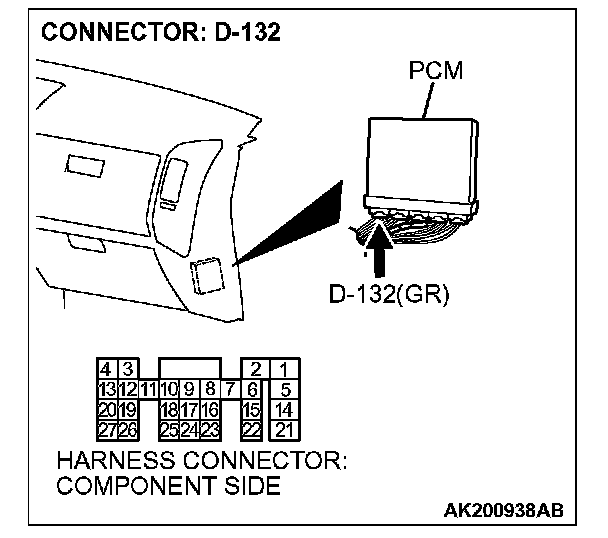 STEP 2. Measure the output voltage at PCM harness side connector D-132.