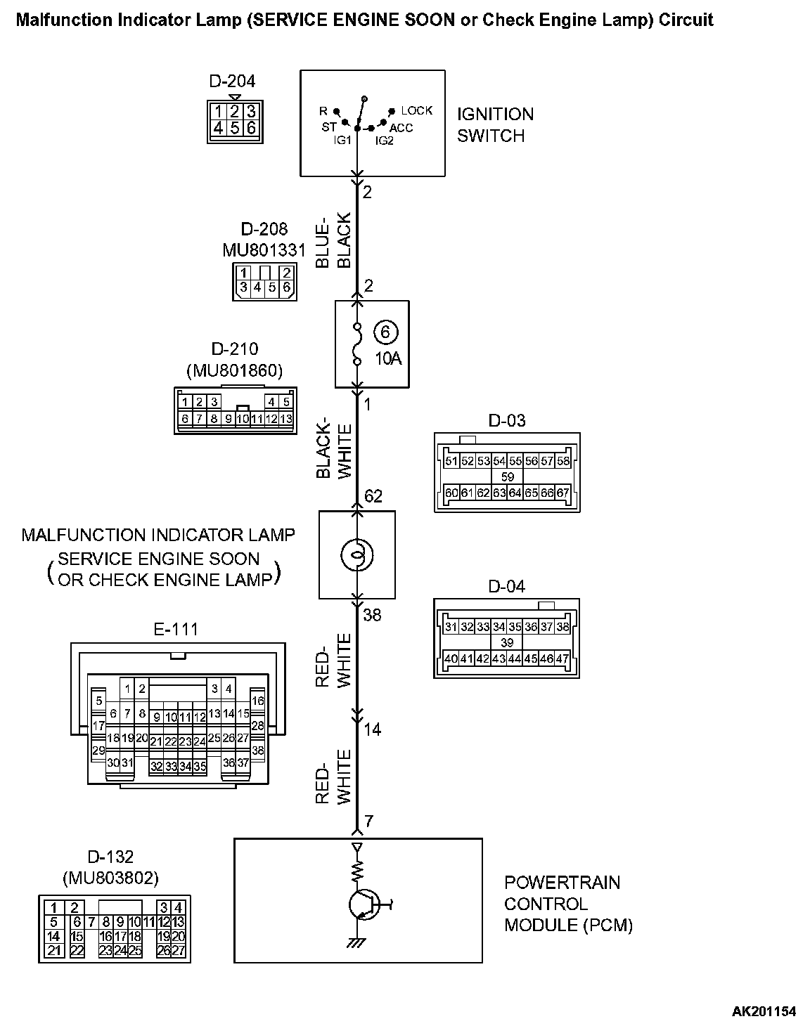 - The malfunction indicator lamp (service engine soon or check engine lamp) power is supplied from the ignition switch.