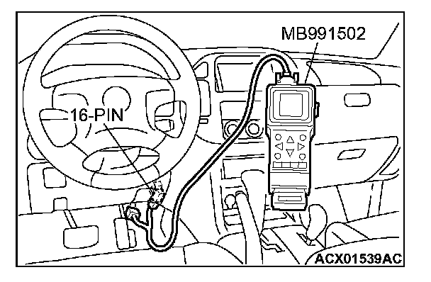 1. Connect scan tool MB991502 to the data link connector.