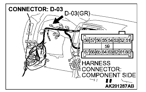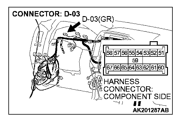 1. Disconnect the connector D-03 and measure at the harness side.