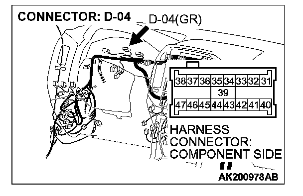 STEP 3. Check harness connector D-03, D-04 at the combination meter for damage.