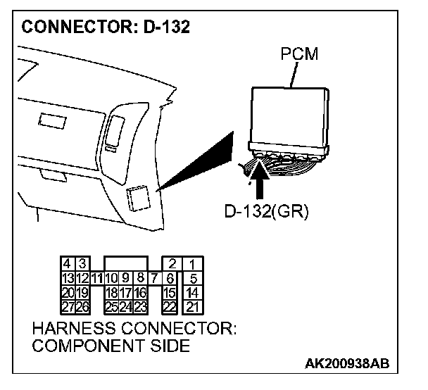 STEP 5. Check harness connector D-132 at the PCM for damage.