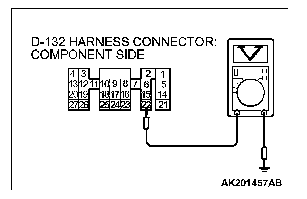 STEP 6. Measure the power supply voltage at PCM connector D-132.