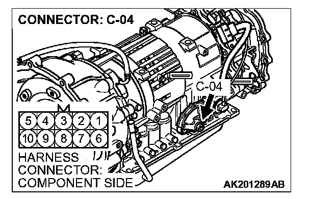 STEP 1. Check connector C-04 at transmission range switch for damage.