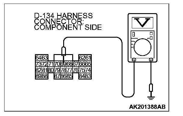 3. Measure the voltage between terminal No. 69 and ground.