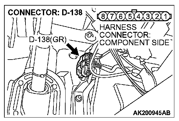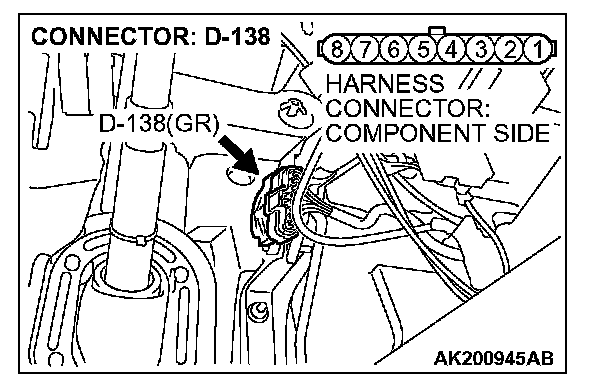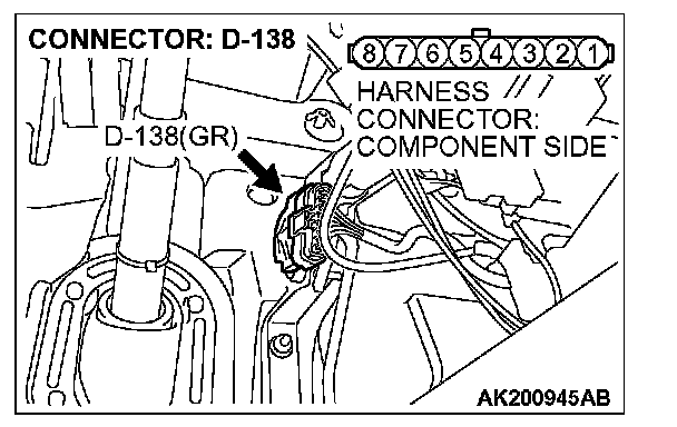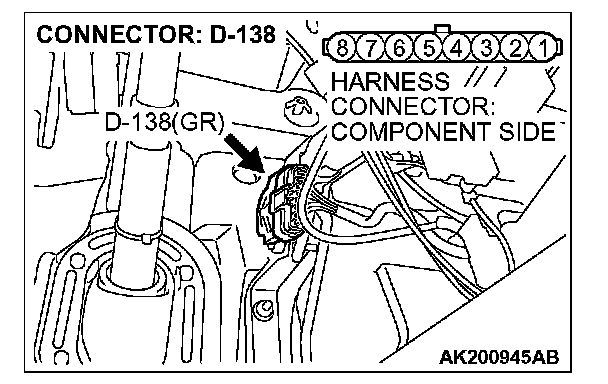 1. Disconnect the connector D-138 and measure at the harness side.