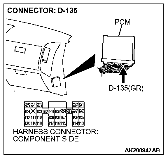 STEP 7. Check connector D-135 at PCM for damage.