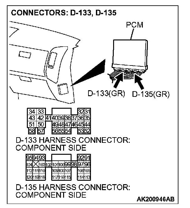 STEP 9. Check connector D-133, D-135 at PCM for damage.