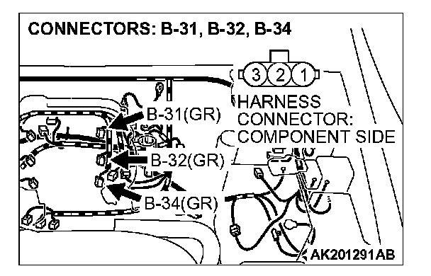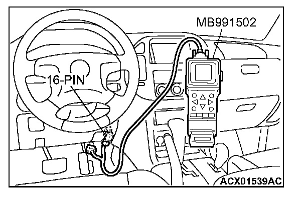 CAUTION: To prevent damage to scan tool MB991502, always turn the ignition switch to the "LOCK" (OFF) position before connecting or disconnecting scan tool MB991502.