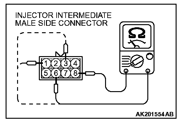 b. Measure the resistance between terminal No. 8 and No. 1 when measuring No. 3 cylinder injector.