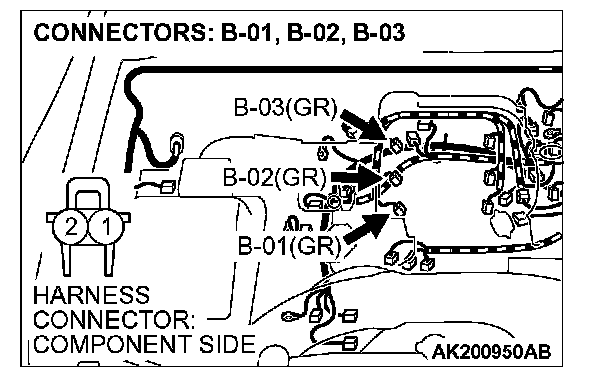STEP 11. Check harness connector B-01 or B-02 or B-03 at right bank injector for damage.